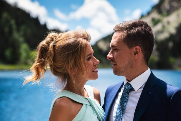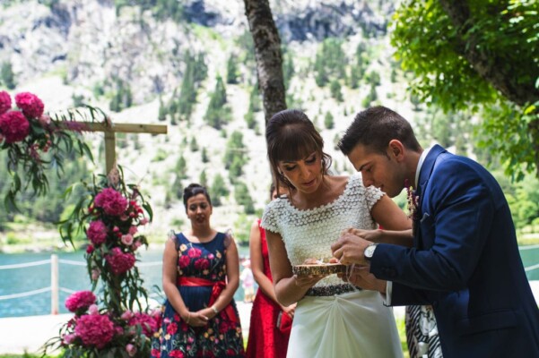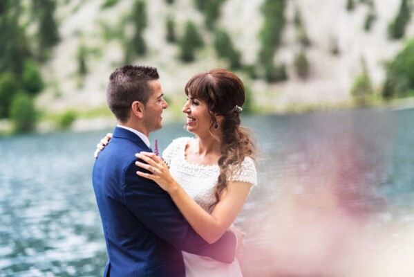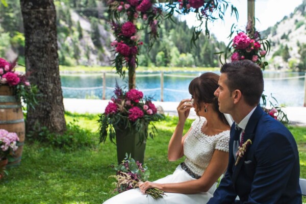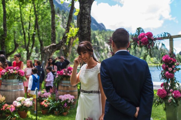Emociones, nervios de Diego en la espera de Elena, lágrimas al verse por primera vez ahí delante de todos los invitados también emocionados y todo esto en el lago del Balneario de Panticosa, un lugar precioso y en un día con predicción de lluvias que acabo siendo un día espectacular, por que el agua respetó el gran día de Diego y Elena.