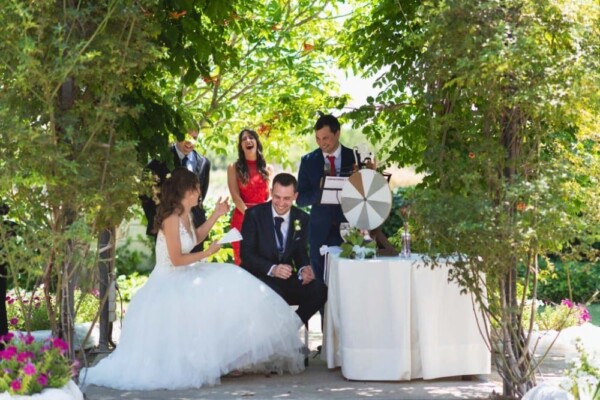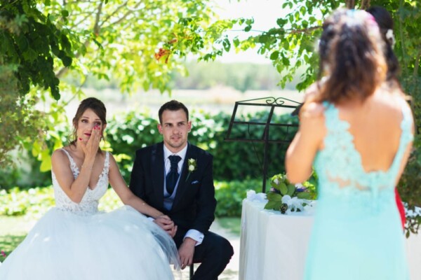 Primero nervios para poco a poco dar paso a esas sonrisas cómplices acompañadas de lágrimas de emoción. Que bonito es cuando a sus sentimientos se unen los de todos sus seres queridos. Que bonitas las lecturas en la ceremonia, que bonito el momento en el que la hermana junto con la amiga que ofició la ceremonia les cantaron una canción, que bonito cuando su pequeña Arya y su sobrino acercaron los anillos en un coche, que bonito que los amigos dieran todo en su boda desde mantear a Alex bajo un sol de justicia hasta beberse todo el Jägermeister en pleno banquete, y que bonito el atardecer como broche final a un día precioso.
